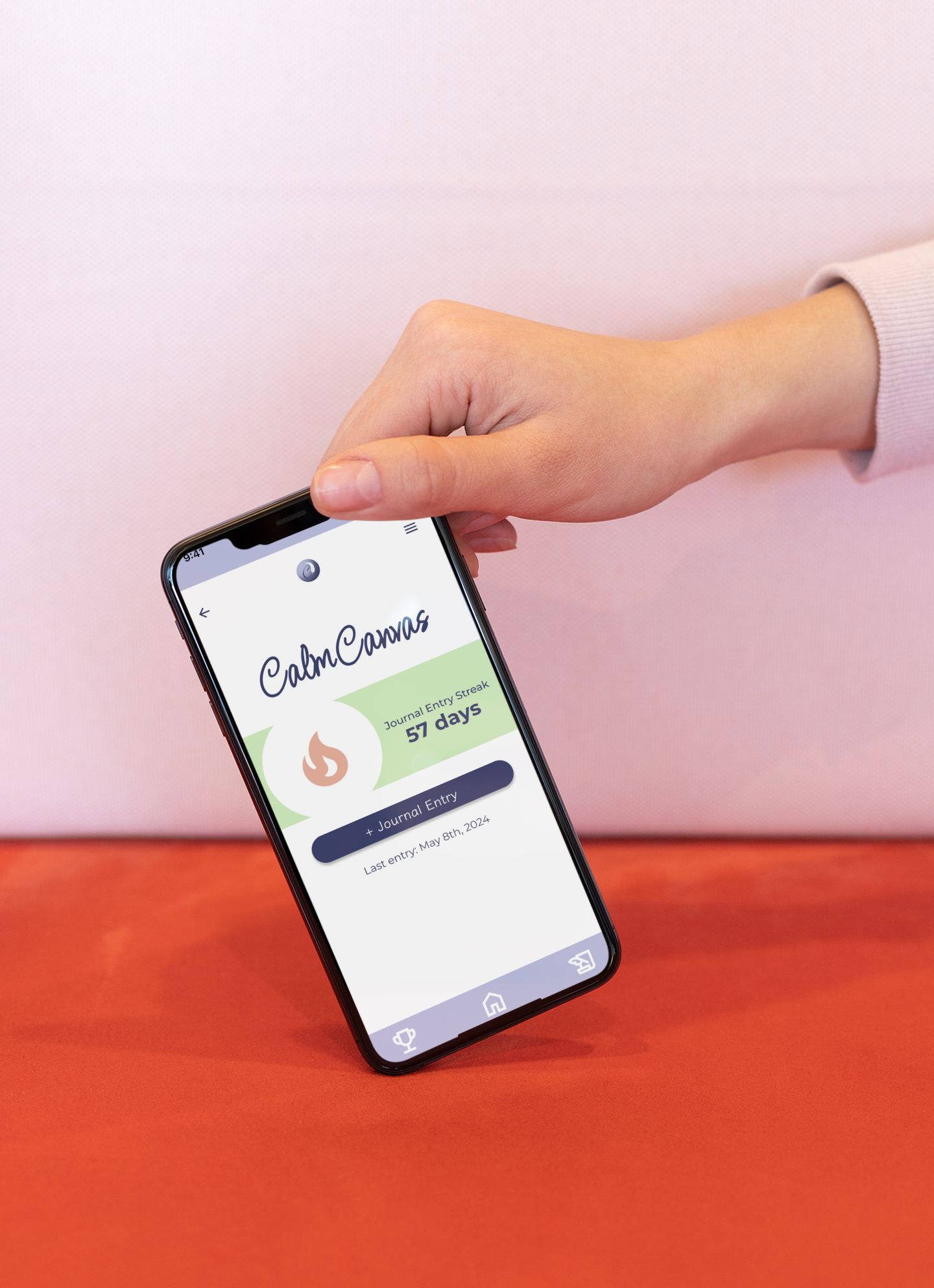 CalmCanvas is an app that motivates users to manage their stress on a long term basis by offering tangible rewards for engaging daily with the app.